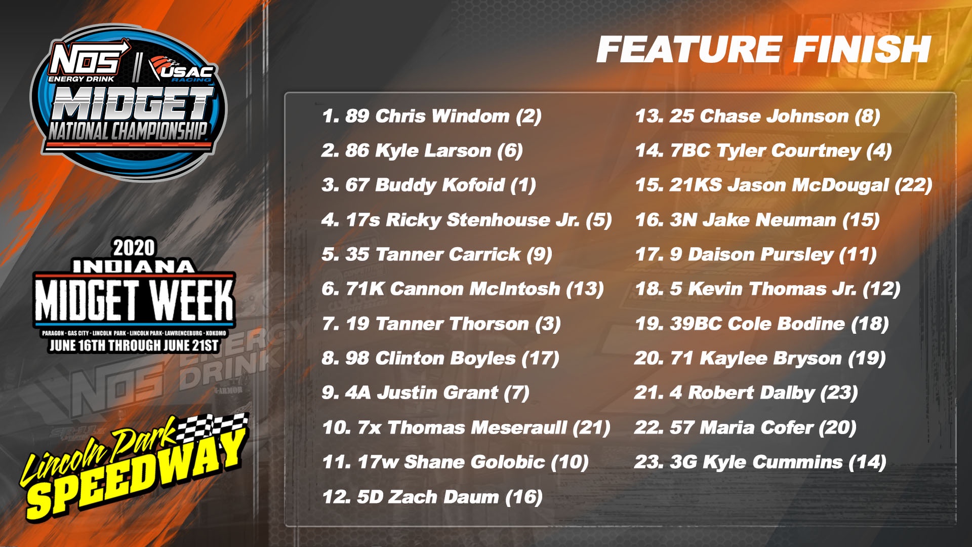 Windom, scores his second win of the season and second of his career during the 16th annual Midget Week.