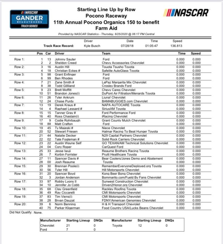 The NASCAR Gander RV & Outdoors Truck Series is back in action this weekend at Pocono Raceway for the Pocono 150 to benefit Farm Aid this Saturday at 12:30 p.m. ET (on FS1, MRN and SiriusXM NASCAR Radio).