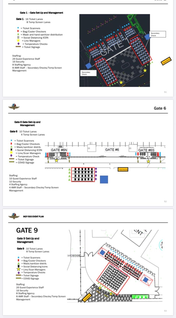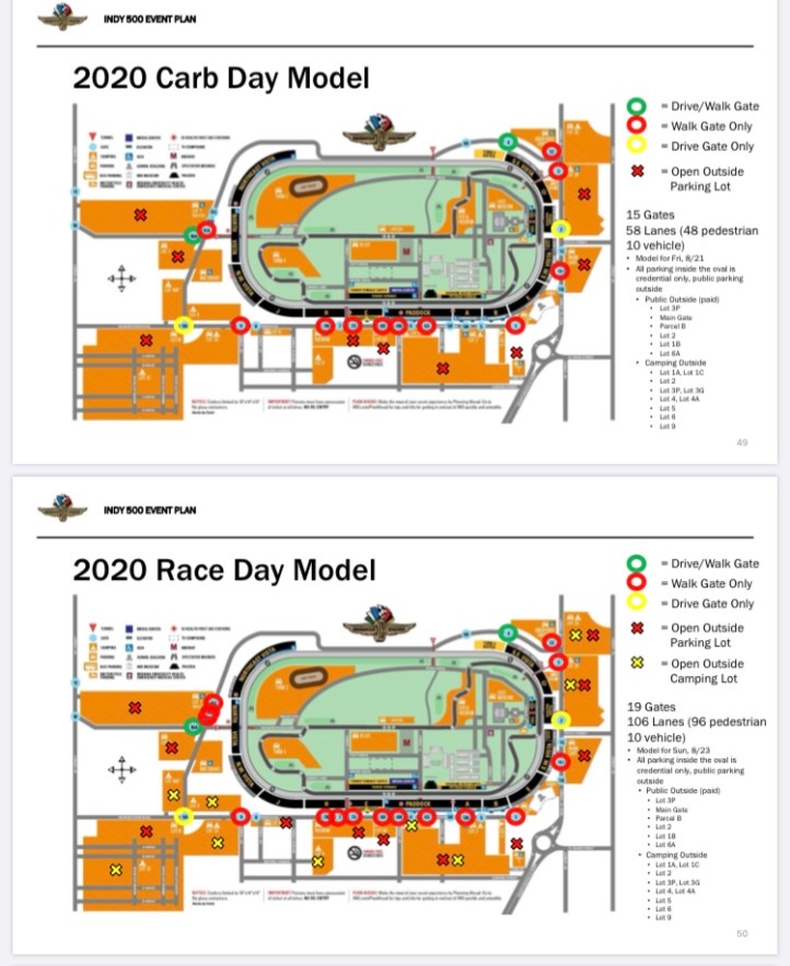 Vehicles will only be allowed to enter the infield through two gates: 10A and 2.
