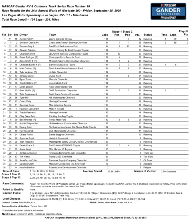 Creed, only has three top 10 finishes in his last nine starts of the season, so that’s why he was so dejected. He said this was the best truck that he’s ever had in Vegas and he failed to win.