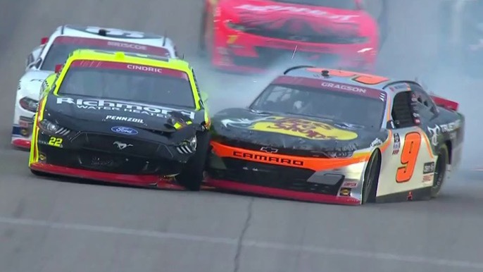 Gragson and Cindric wound up touching down the back stretch. Both of them managed to keep their cars pointed the right direction, but they were forced to spend along time on pit road to fix their cars.
