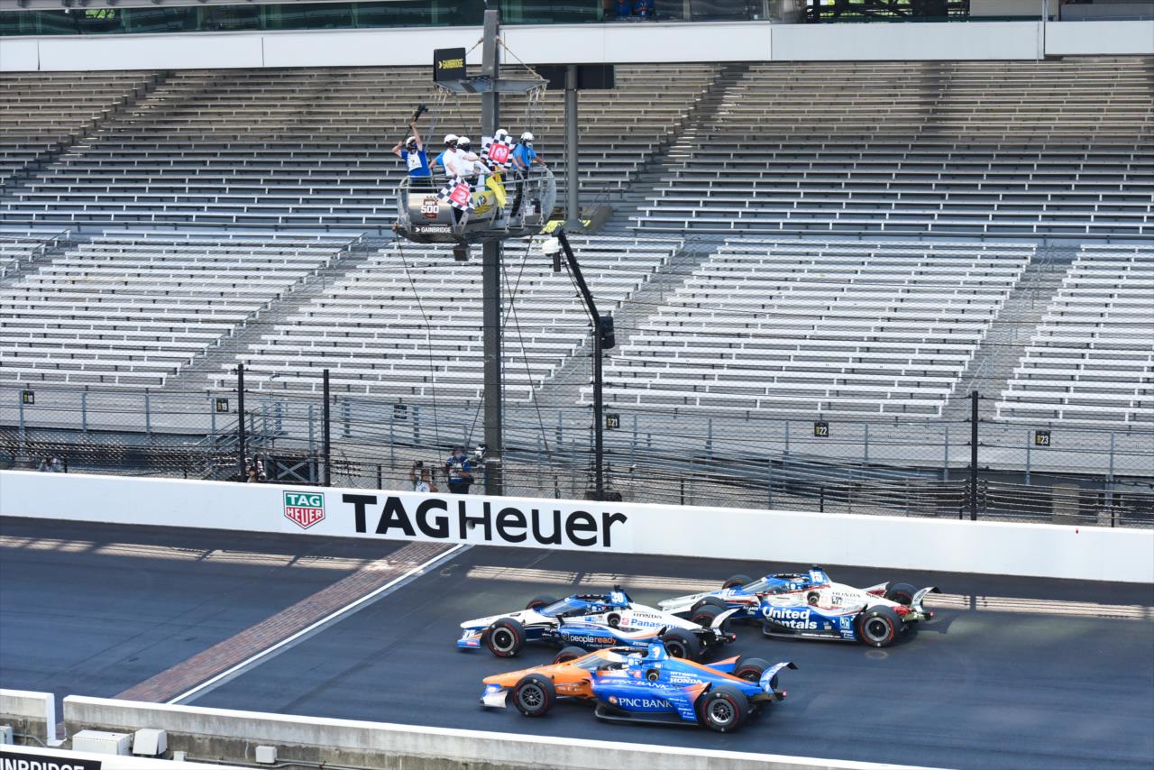 Rossi crashed in Turn 4 on Lap 69. He had led 61 laps up to that point. Andretti crashed with a flat right rear tire from contact by Takuma Sato on the Lap 75 restart. Hinchcliffe, spun by himself under that caution in the final turn while running second. He got his car going and hit Harvey while turning back onto the racing surface.