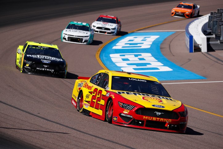AVONDALE, ARIZONA – MARCH 14: Joey Logano, driver of the #22 Shell Pennzoil Ford, leads the field during the NASCAR Cup Series Instacart 500 at Phoenix Raceway on March 14, 2021 in Avondale, Arizona. (Photo by Christian Petersen/Getty Images)