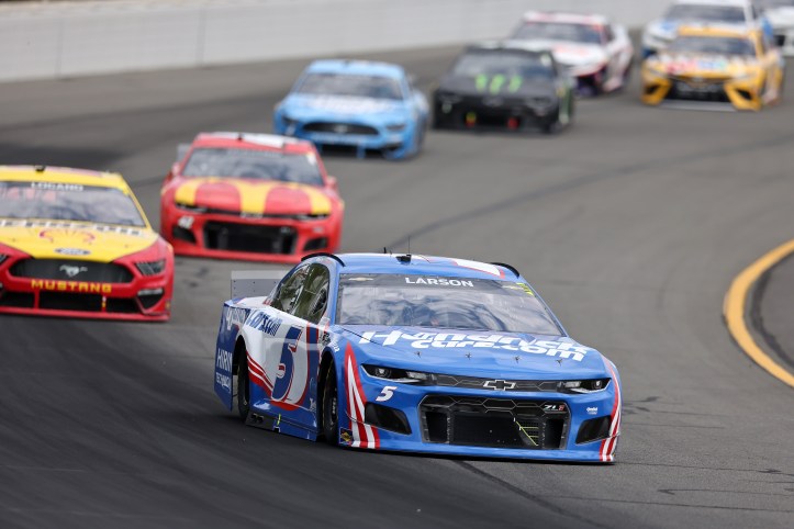 “I don’t know. It’s surprising finish for us,” Larson said after not leading a single lap on Sunday afternoon. “Our HendrickCars.com Chevy was really loose for a majority of the race, then we got a lot of nose damage there on one of the restarts. Was off on speed. I felt like after that.
