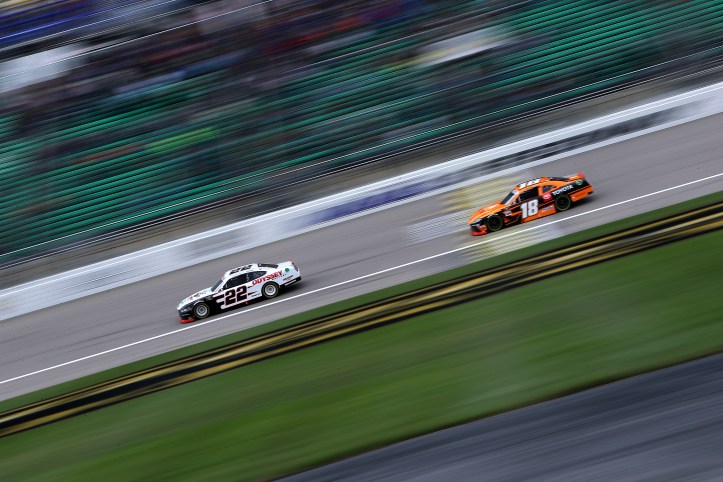 Gibbs, while still on the lead lap, would move up to restart with the leaders again, this time in the top 15. There were only 18 cars on the lead lap at the time and two had just spun. He’d steadily move his way back up and pass Austin Cindric with 11 laps left for the lead and never look back. Gibbs, would prevail in Kansas for his fourth victory of the season and take the 54 team back to victory lane for the 11th time in 31 races run including two straight.
