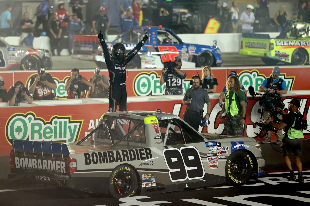 Rhodes, used his bumper to get past Zane Smith for third place in the race but first among Championship 4 contenders, with eight laps remaining. The championship was back within his grasps.