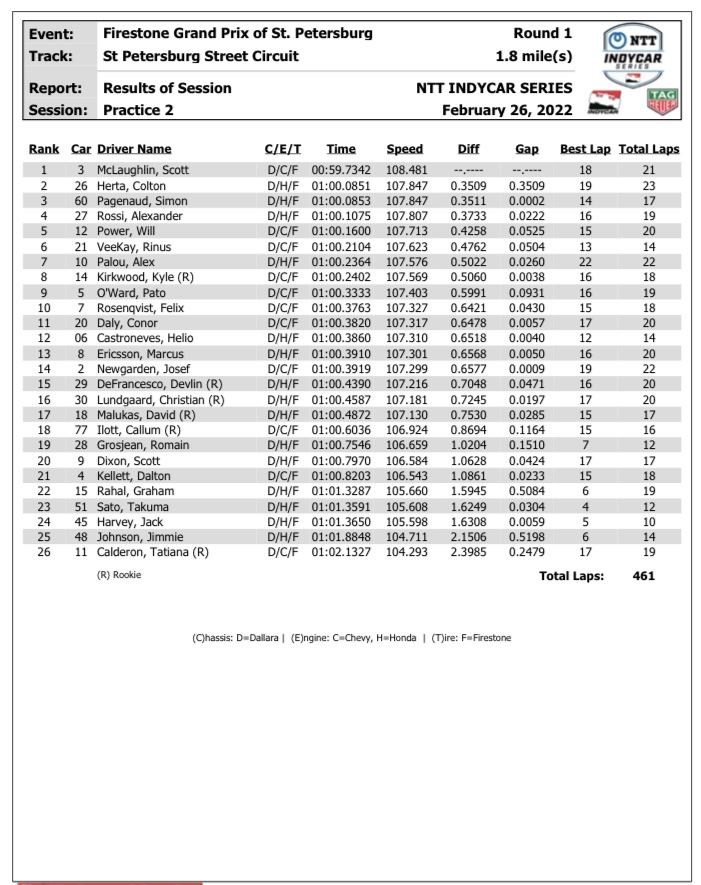 St. Pete being a street course is unique in the sense that we don’t have many of them on the schedule. In 2020 there was just one – this race. Last year, we have a few more in Long Beach, Belle Isle and Nashville joining St. Pete. These are the best comparisons to St. Pete in the fact that the top drivers on those places are also good at St. Pete too.
