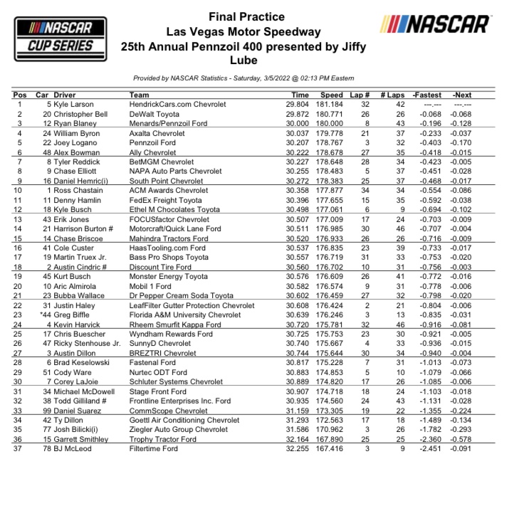 Trends shows that the guys up front would start there anyways. 3 of the top 4 is career best average starting spots in Vegas start in the top six. Larson, Joey Logano and Elliott are second, third and fourth respectively on the list.