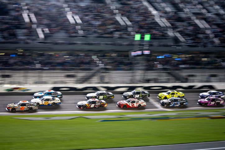 The cars lining up on the front row for this restart had trends going against them. Austin Hill was 1st. Despite having 2 wins and 3 top 2 finishes in 4 superspeedway starts this season, just one other time has someone swept the year at Daytona in this series as that came from Dale Earnhardt Jr. back in 2003. In fact, only three other drivers have ever won at least two straight starts for them in Xfinity Series competition on the high banked 2.5-mile track with two of them being named Earnhardt. They were Darrell Waltrip (1983-1984), Dale Earnhardt (1990-1994, all in February) and Earnhardt Jr. (2003-2004, 3 straight). Could Hill really join that list?