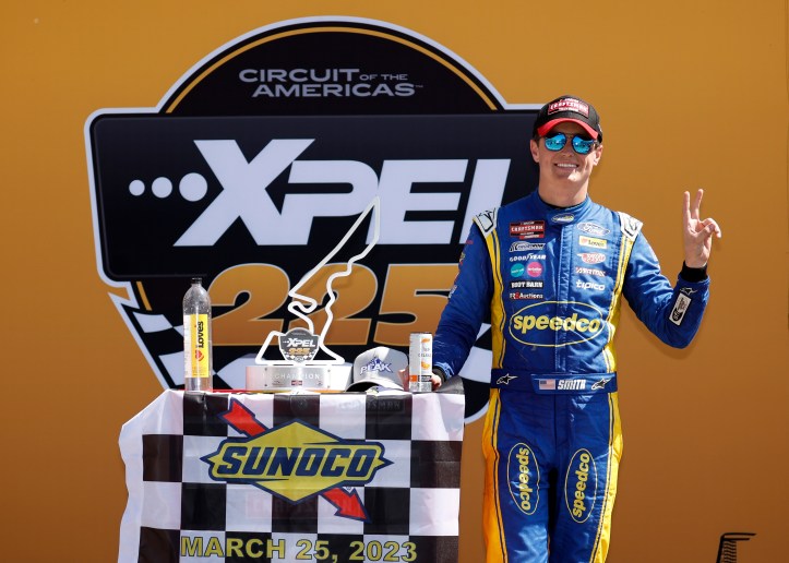 Zane Smith became the first repeat NASCAR winner at the famed Circuit of The Americas road course, the reigning series champion holding off veteran Kyle Busch to claim his second straight victory in Saturday’s XPEL 225 NASCAR CRAFTSMAN Truck Series race.