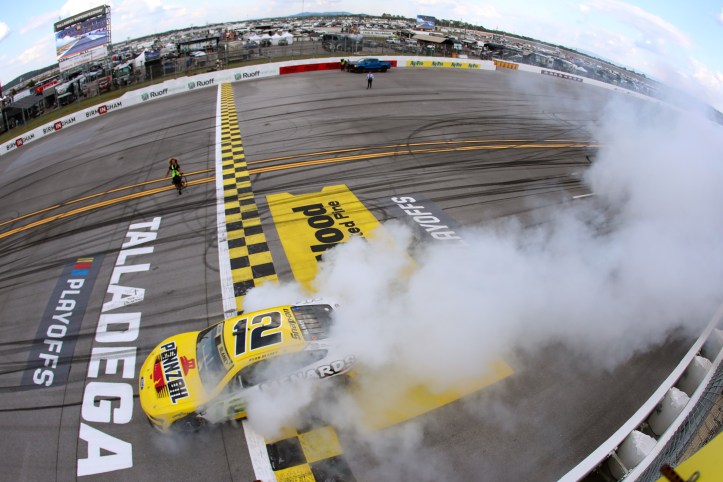 Ryan Blaney made a late race maneuver to lead the final two laps en route to a thrilling victory in Sunday’s YellaWood 500 at the Talladega Superspeedway to land a spot in the Round of 8. It was a thrilling race that featured 70 lead changes among 24 different drivers in a surprising exhilarating race on a superspeedway.