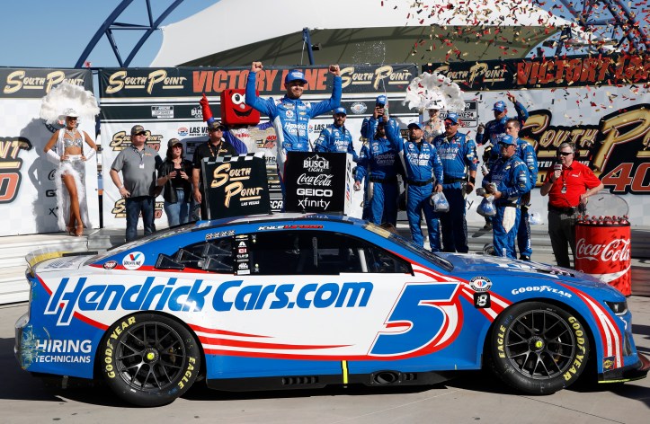Even despite scrapping the Turn 2 wall in the second stage, Kyle Larson still swept the day on Sunday at the Las Vegas Motor Speedway in leading a race-high 133 of 267 laps en route to not only winning both stages, but the South Point 400 as well.